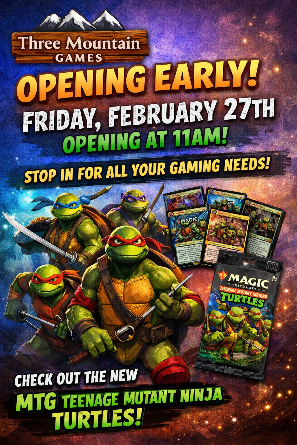 At Three Mountain Games, we believe board games bring people together. Whether you're a family looking for your next game night favorite, a Magic: The Gathering enthusiast, or a Dungeons & Dragons adventurer—we’ve got the games, events, and community you're looking for.